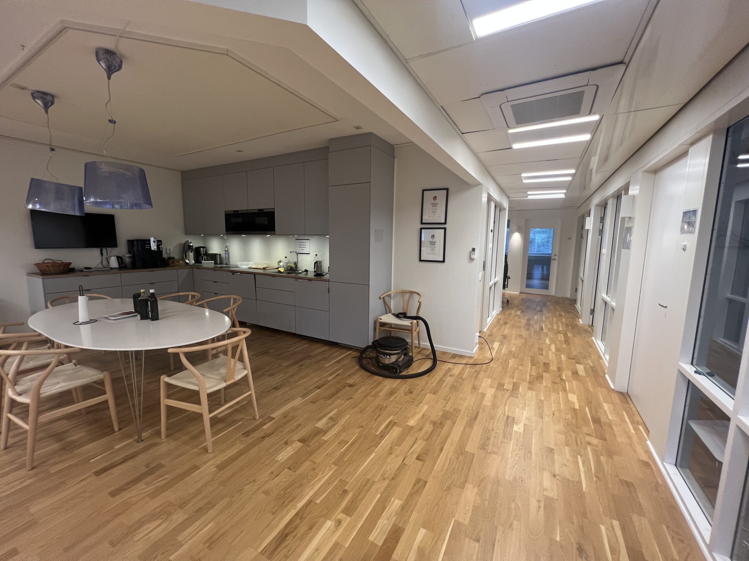 Uppfräschade nya golv o målade väggar mm. Kontoret är på plan 1 med en stor välkommande öppen entré med plats reception, soffa mm. Kontoret består av 11 rum i olika storlekar varav 2 stycken används som konferensrum. Stort öppet fint kök med plats för stort matbord, loungedel. se ritning.